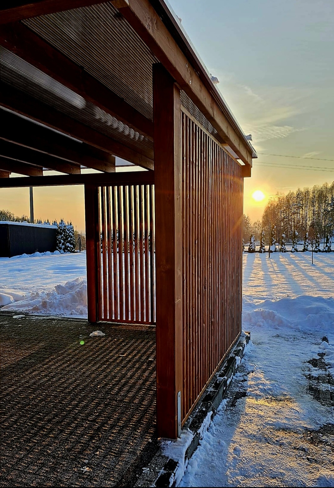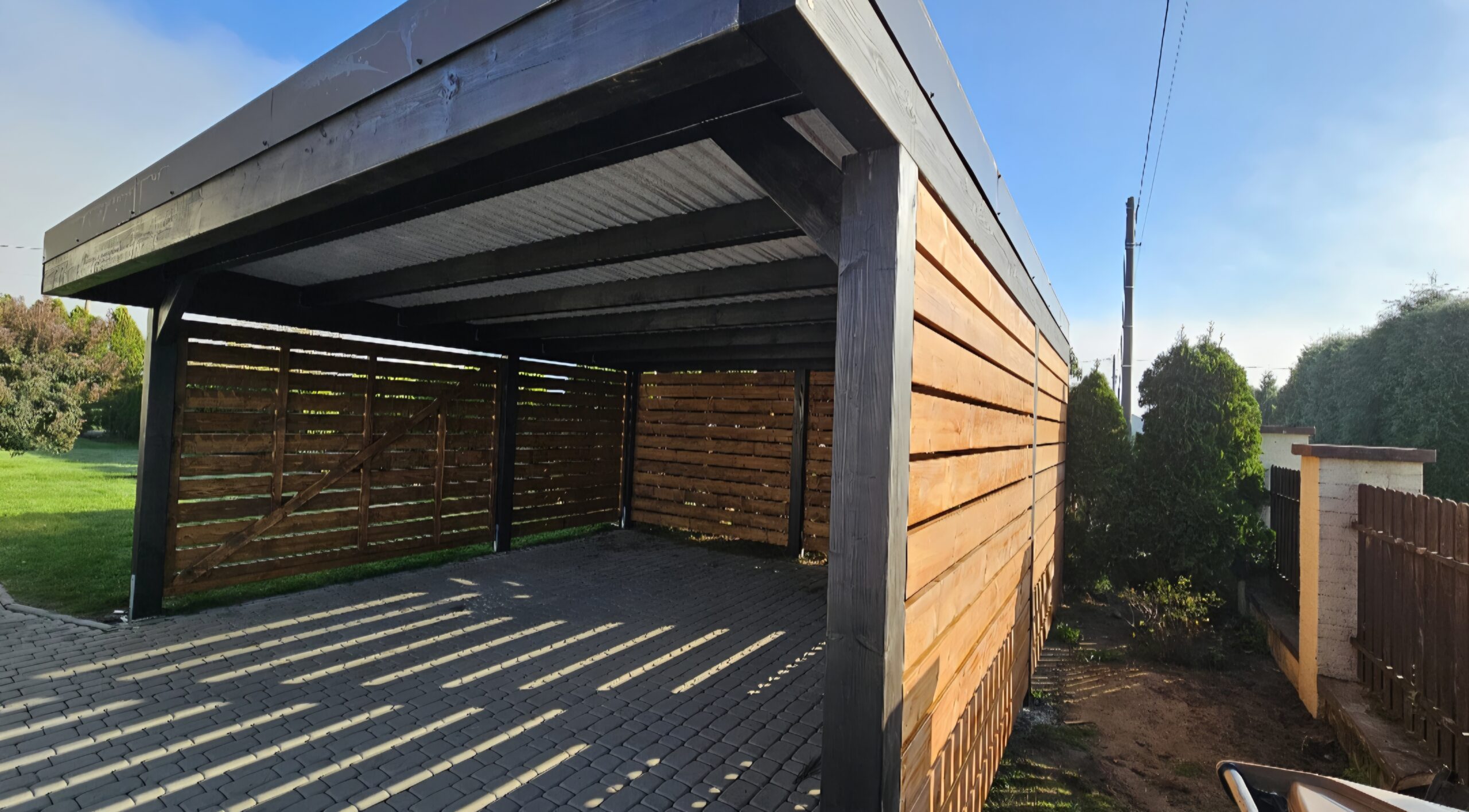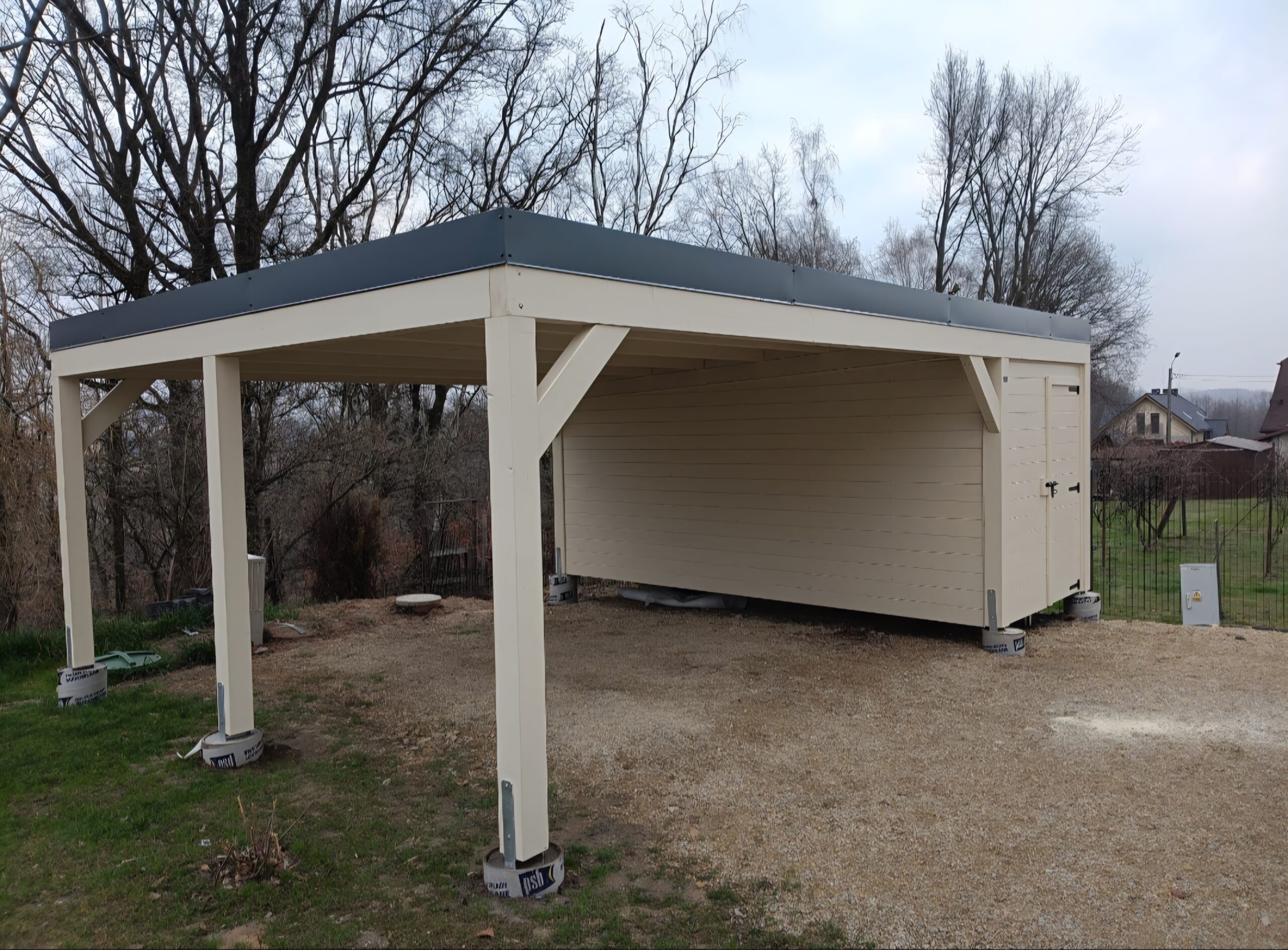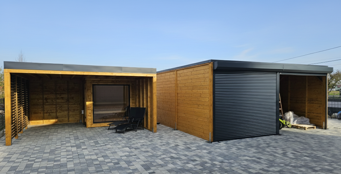 Istnieje możliwość wyłożenia podłogi deską tarasową, kompozytową lub drewnianą. Dachy pokrywamy gontem, papą, blachotrapezem lub poliwęglanem.