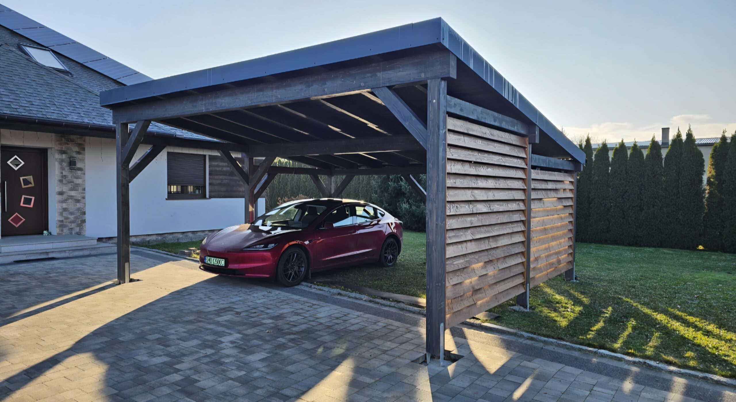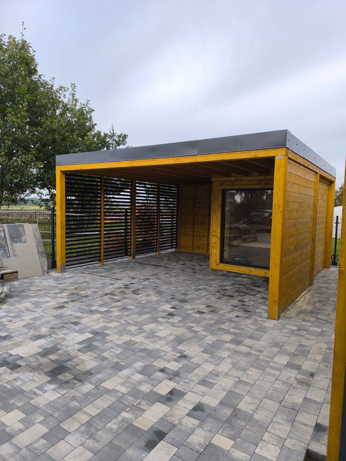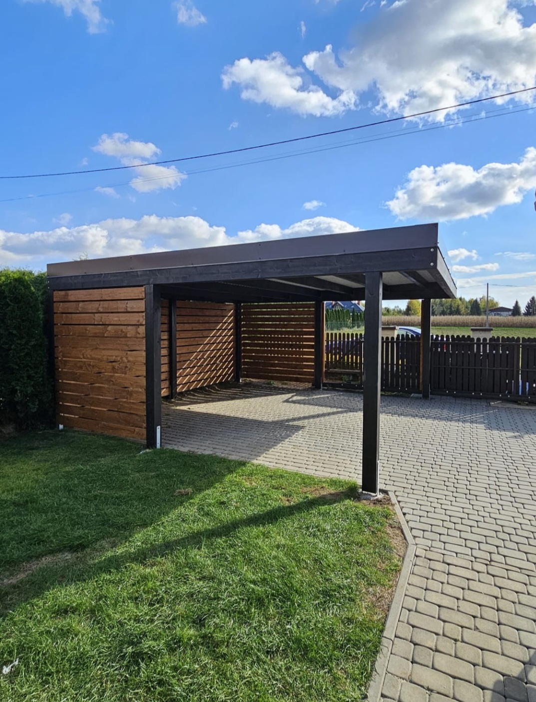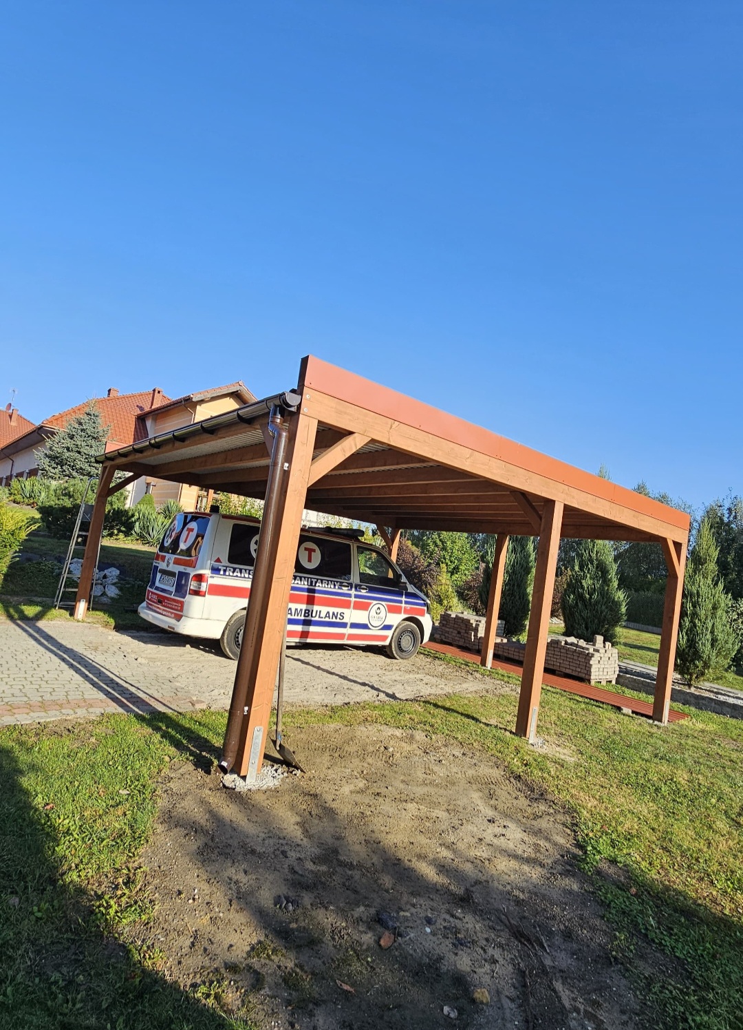Istnieje możliwość wyłożenia podłogi deską tarasową, kompozytową lub drewnianą. Dachy pokrywamy gontem, papą, blachotrapezem lub poliwęglanem.