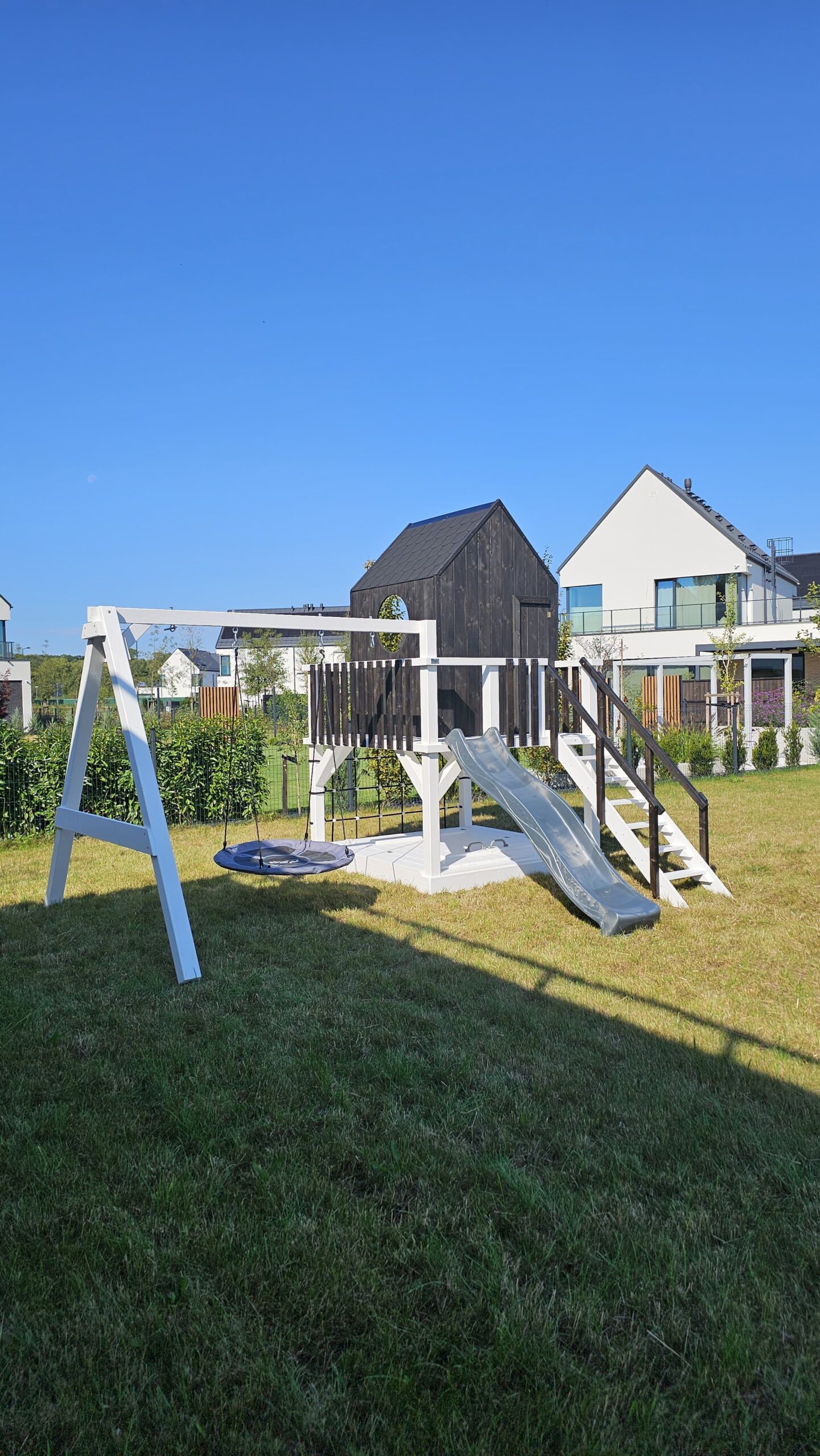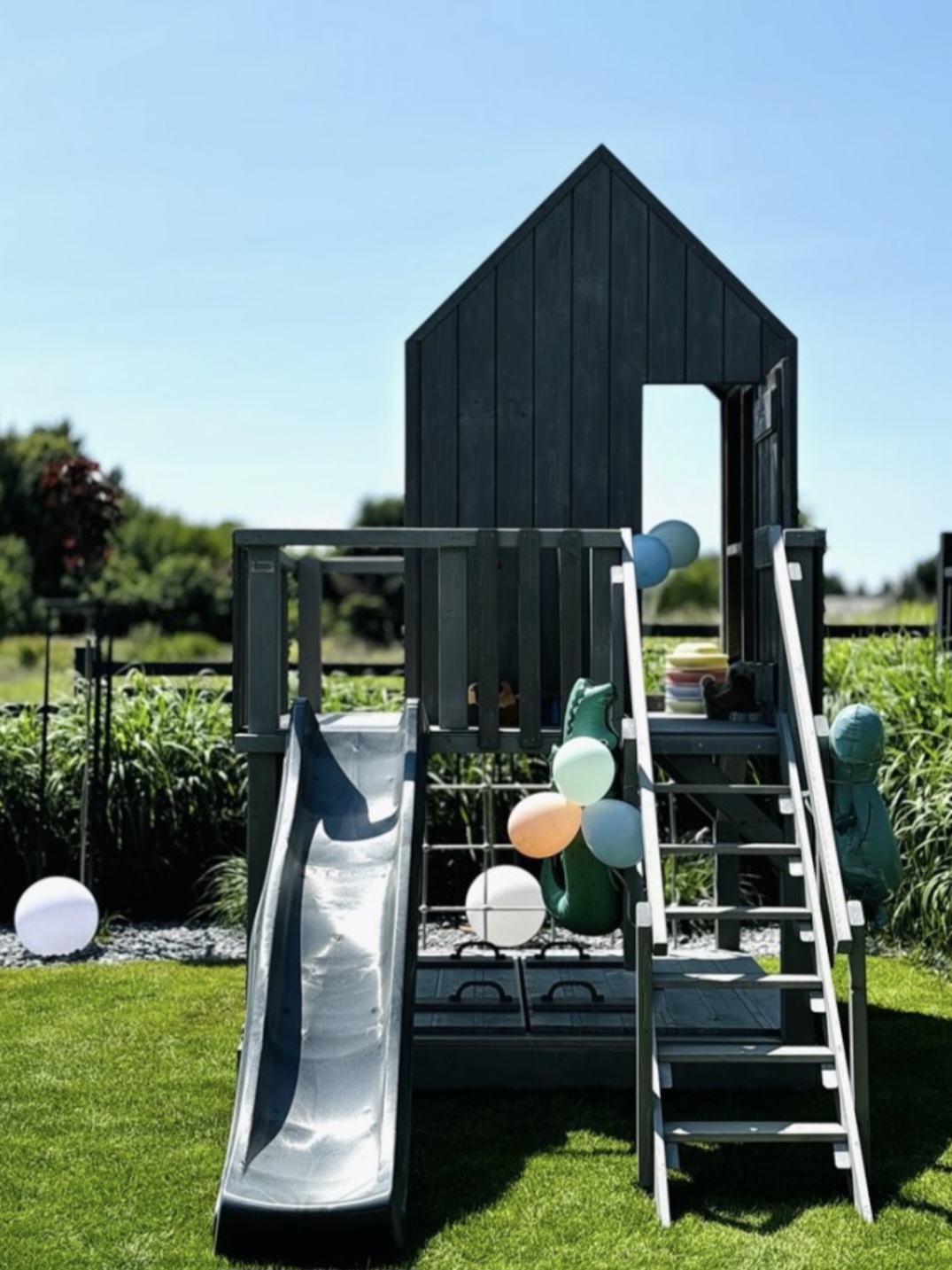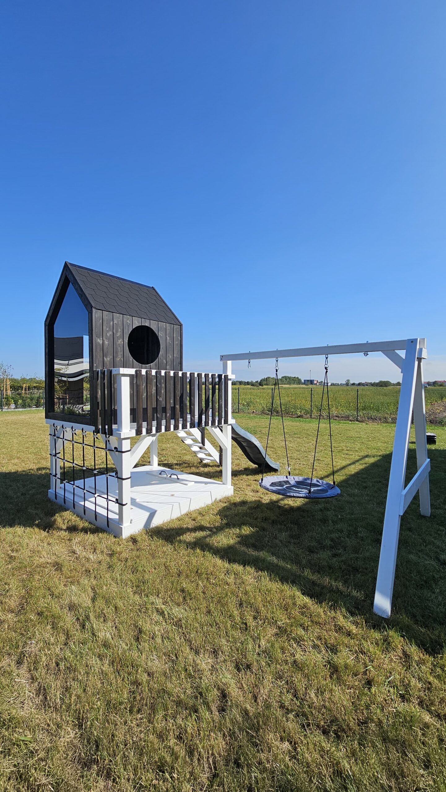 W odpowiedzi na takie właśnie prośby powstała seria „Nowoczesna Stodoła” – place zabaw o różnych kształtach i wielkościach, ale z jednym wspólnym akcentem – domkiem w stylu nowoczesnej stodoły.